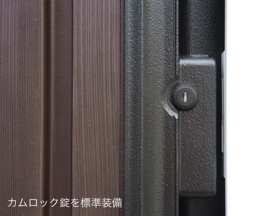 シンプルな中にも作り込んだ本物の木のような質感はFRPで再現。経年変化に強く、永年美しいデザインを維持することができます。扉は両開きでモノの出し入れがスムーズな上、カムロック錠で防犯性も。上質な物置を求めるあなたにおすすめです。