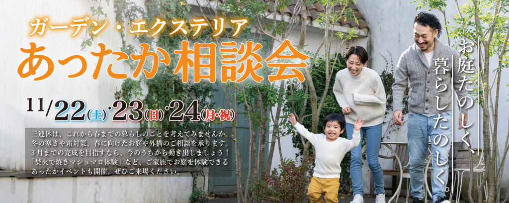 『焚火で焼きマシュマロ体験』など、ご家族でお庭を体験できるあったかイベントも!
