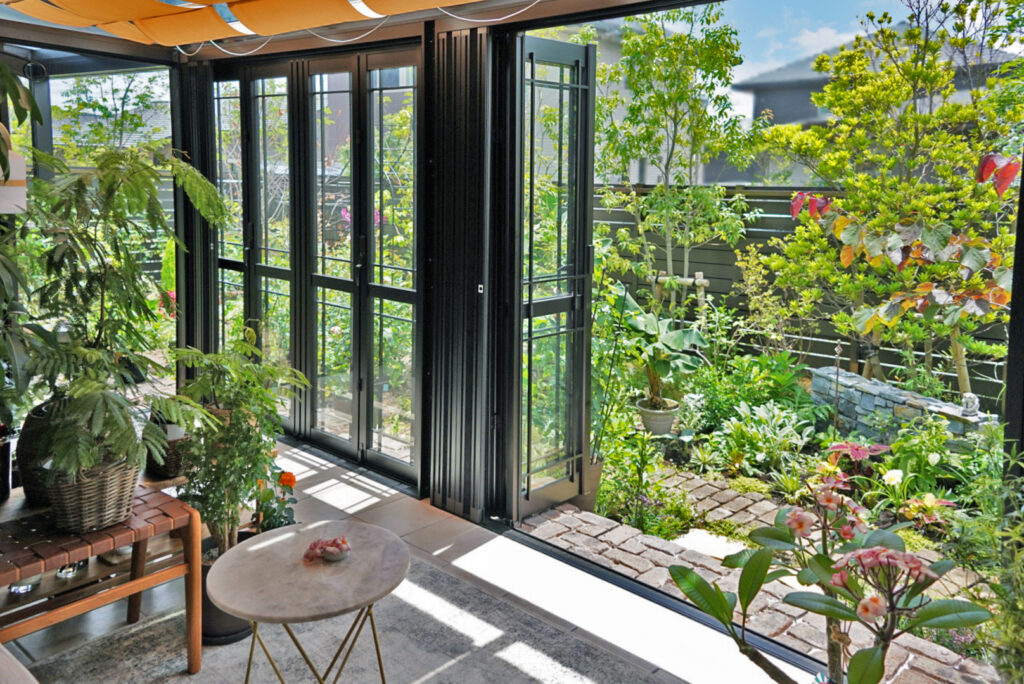 “内”と”外”のあいだをつなぐ、もうひとつの居場所。寒い冬でも、日差しの入るリラックススペースに。春からは『アウトドアリビング』として、家族の憩いの場になります。