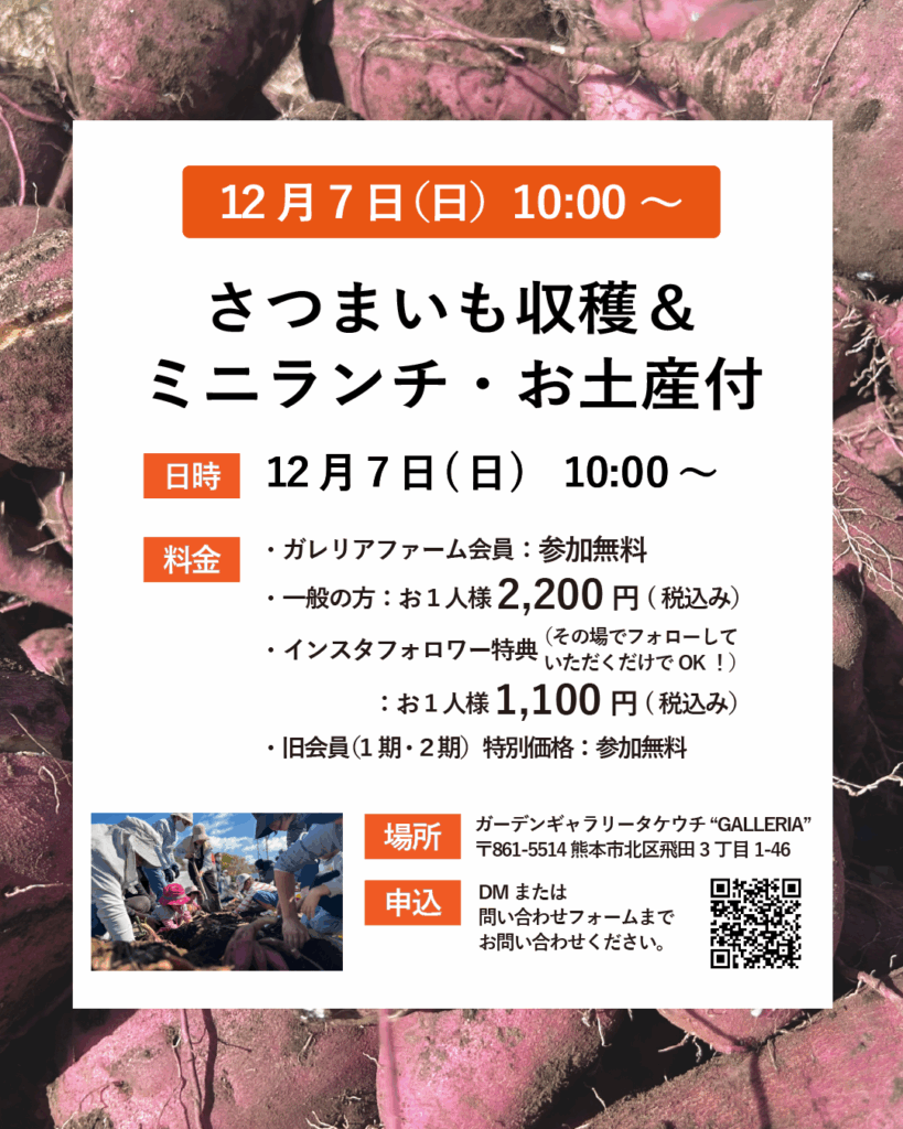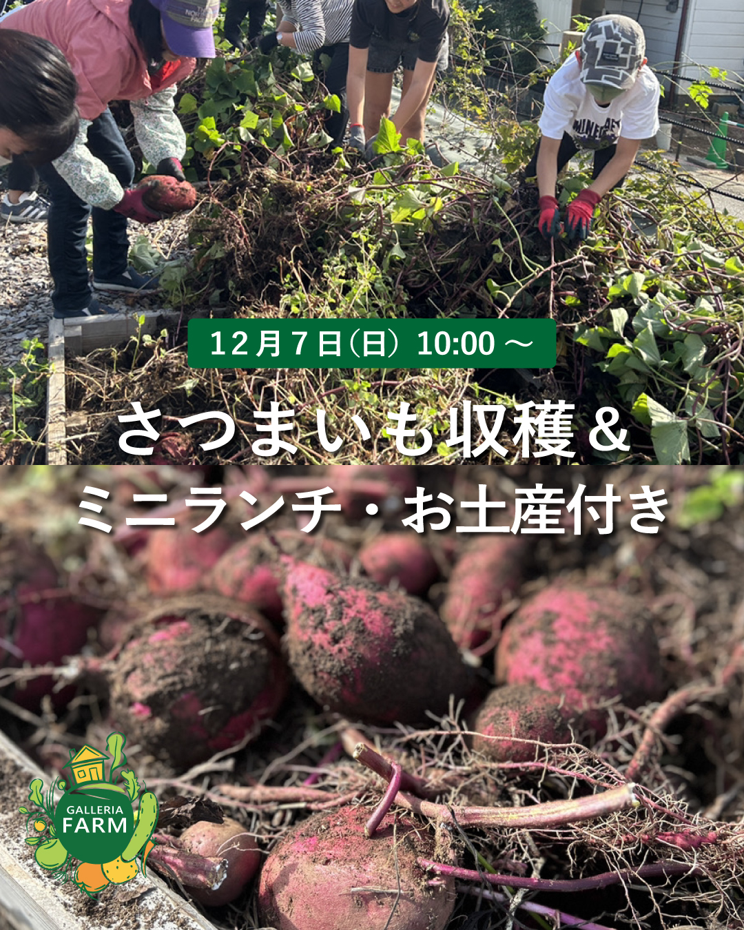 【12/7(日)開催】ガレリアファーム さつまいも収穫体験&ミニランチ・お土産付